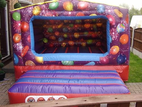 Perfect for indoor hires. Our Celebrations is a low height box castle can be used as in most hall as its only 7'6 and designed for under 7s with very eye catching art work and colours kids just love.