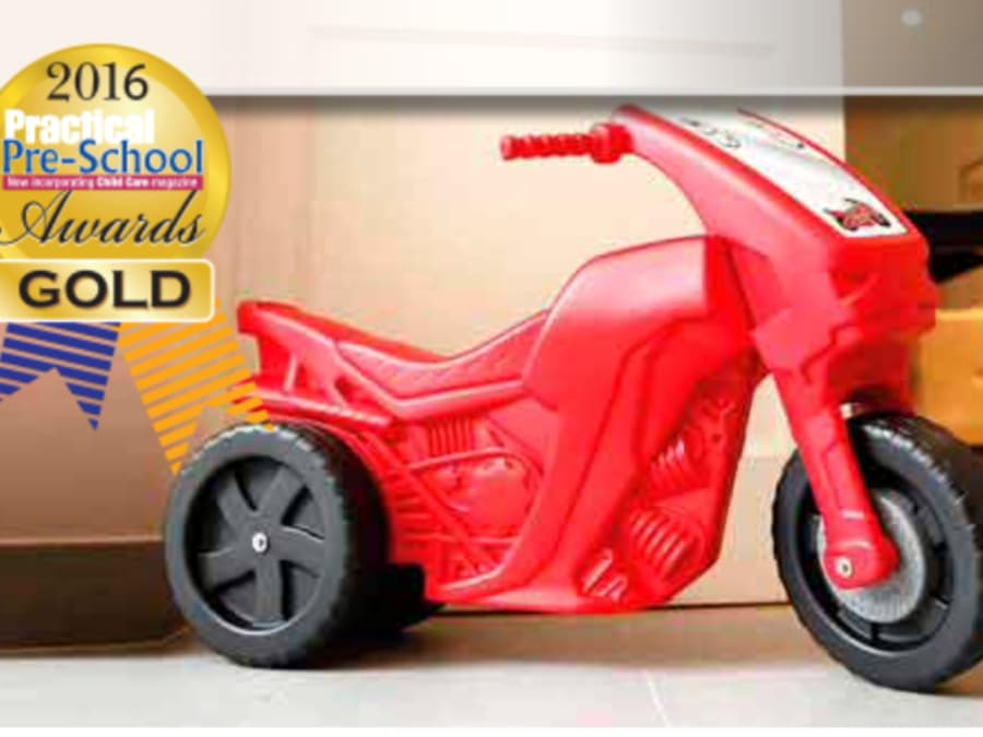 Children who can walk confidently unaided, and whose feet touch the ground whilst seated with a bent leg, can ride all by themselves