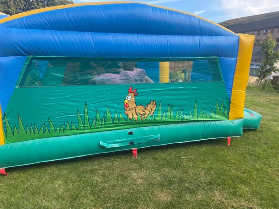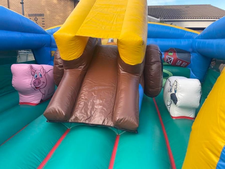 Transform any event into a countryside adventure with our Farm Yard Activity Bouncy Castles! Perfectly capturing the essence of the farm, this delightful bouncy castle combines fun and imagination. It's adorned with charming farmyard animals and features a side slide for extra excitement. Your little ones will love riding on the friendly animal figures! Measuring 15 x 17ft, and with a height of only 7ft, it fits comfortably inside most halls, making it an ideal choice for indoor bounce castle hire.