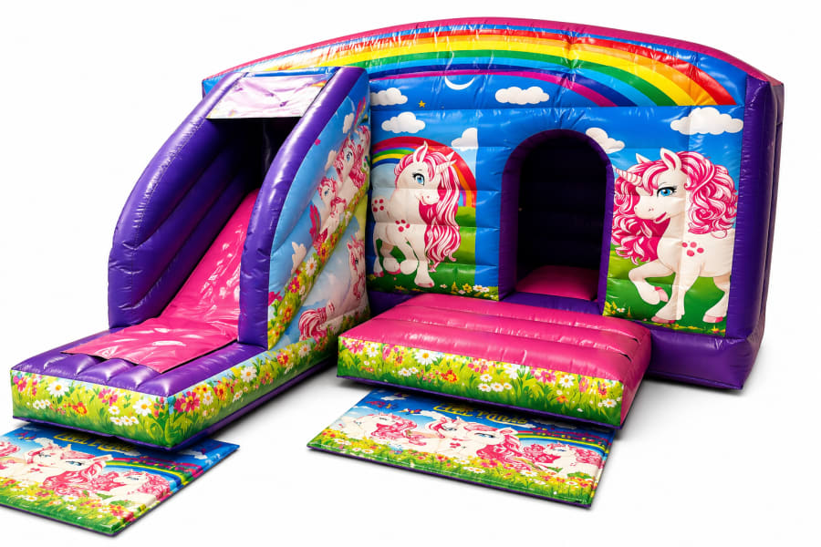 A1 Jump and Bounce felt we had to add this bespoke low hight unicorn theme castle with slide to our range of bouncy castle and inflatables.