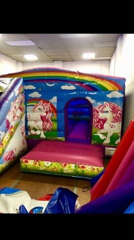 A1 Jump and Bounce felt we had to add this bespoke low hight unicorn theme castle with slide to our range of bouncy castle and inflatables.