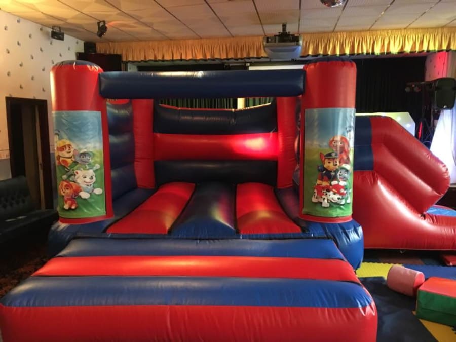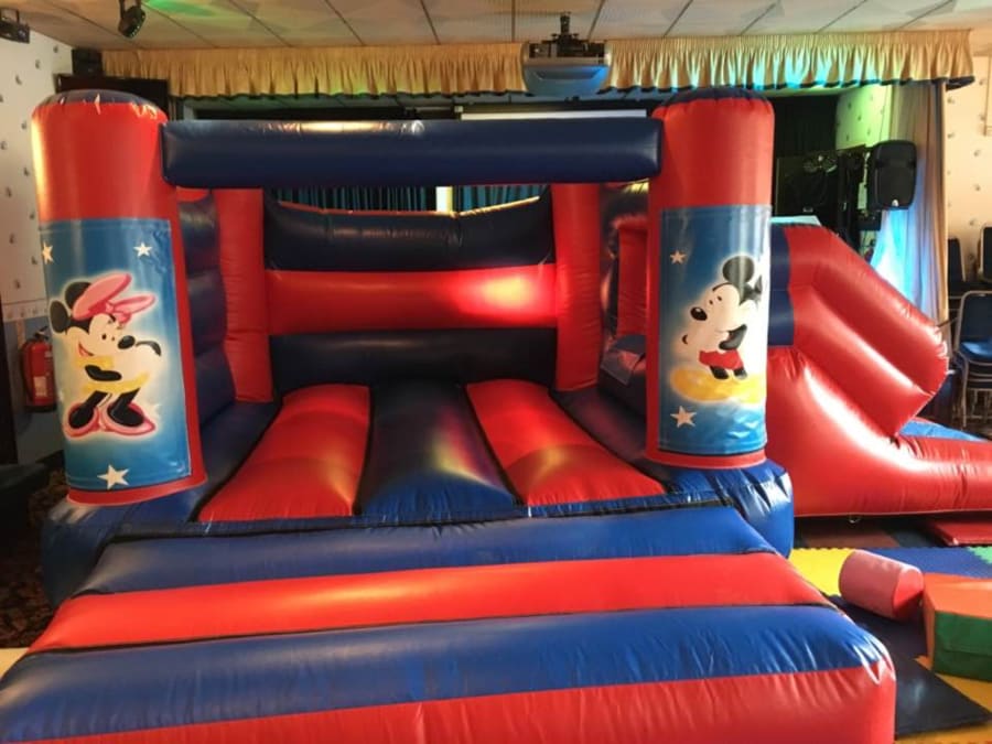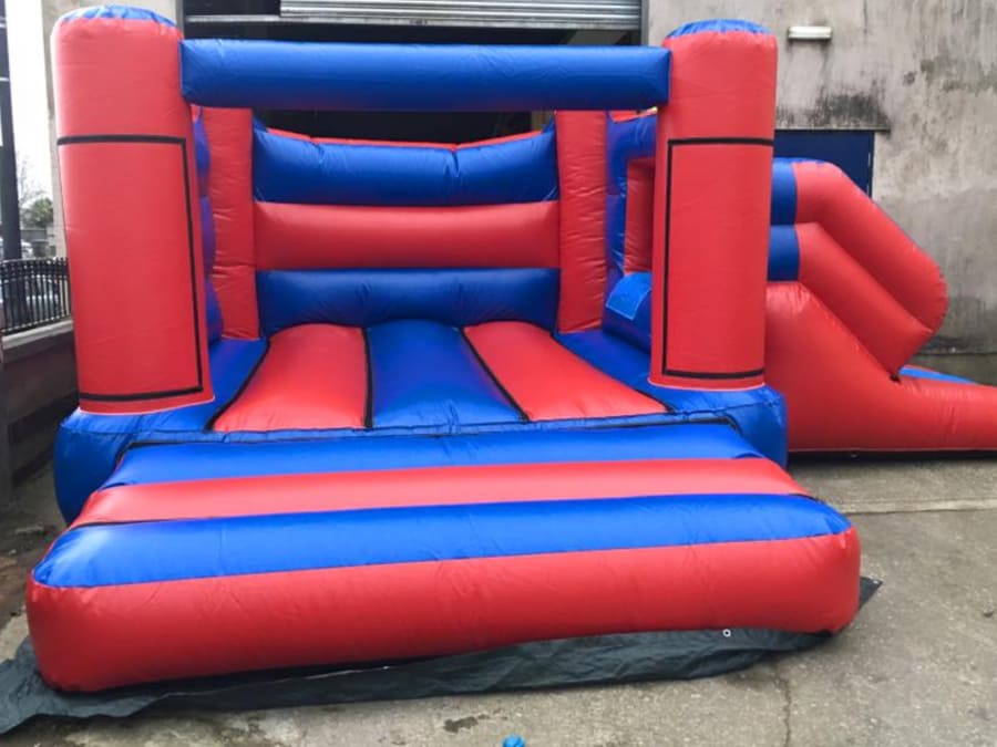 This castle it's for halls and clubs with low height ceilings. Lovely bright colours and a easy to climb slide perfect for the younger ones.