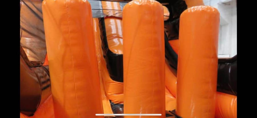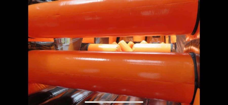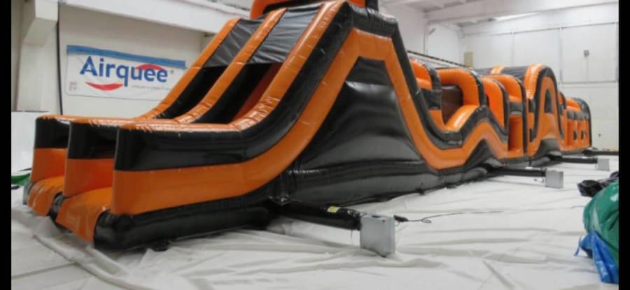 . This large bouncy castle with its double entrance makes it ideal for racing through the obstacle course to get to the end. Enter the double tunnel entrance and jump over and through the many obstacles inside, climb up the wall and down the large slide at the end as fast as you can to be the boot camp challenge winner. This is one of our largest obstacle course that we have.